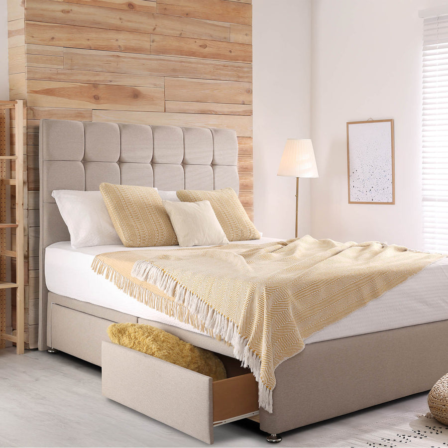 The bed is delivered in one preassembled piece in single size and two preassembled pieces in double, king and super king size. The headboard is separate.